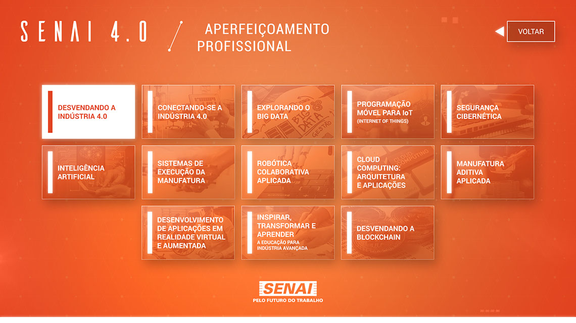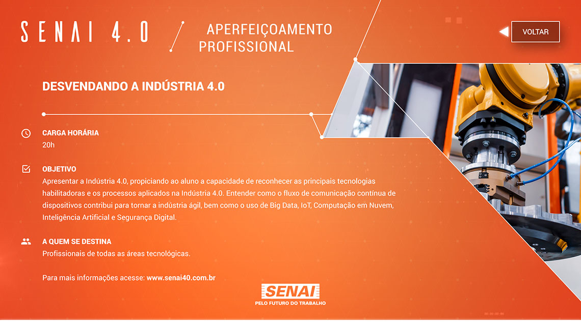 E por fim, também desenvolvemos um aplicativo de consulta de informações sobre os cursos na área de indústria 4.0 que o Senai oferece em suas unidades.